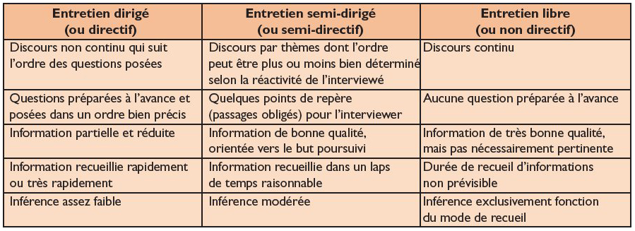 Il permet d'orienter en partie le discours des personnes interrogées autour de différents thèmes définis au préalable par les enquêteurs et consignés dans un guide d’entretien. Wikipédia